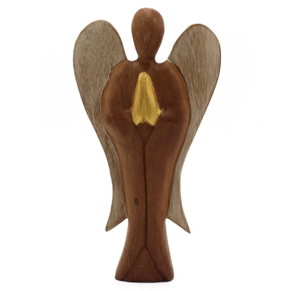 Anioły Hati-Hati powstają w górskich wioskach Indonezji z drewna suar. Każdy anioł został starannie wyrzeźbiony ręcznie, wysuszony na słońcu, wykończony, polerowany i pomalowany przez rzemieślników.