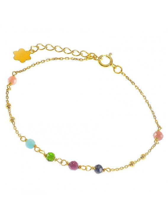 Bransoletka wykonana ze srebra próby 925 , pozłacanego 24 karatowym, żółtym złotem Kamień:  Amazonit + Rubin+ Lapis + Diopsyd + Hematyt Rozmiar kamienia: 3 mm Długość :17,5 cm + przedłużka do 19,5 cm Produkt wykonywany ręcznie.