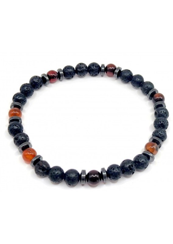 Bransoletka wykonana na gumce Kamień: Hematyt+ Agat + Lawa Rozmiar kamienia: 6mm Rozmiar uniwersalny. Produkt wykonywany ręcznie.