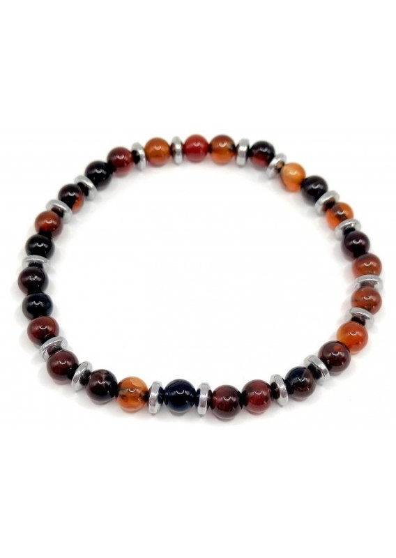 Bransoletka wykonana na gumce Kamień: Agat + Hematyt Rozmiar kamienia: 6mm Rozmiar uniwersalny. Produkt wykonywany ręcznie.