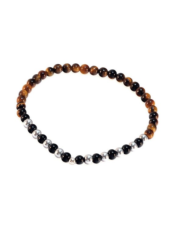 Parametry: tygrysie oko + agat + hematyt; kamienie 4 mm; elementy srebro 925; rozmiar uniwersalny; wykonanie ręczne.