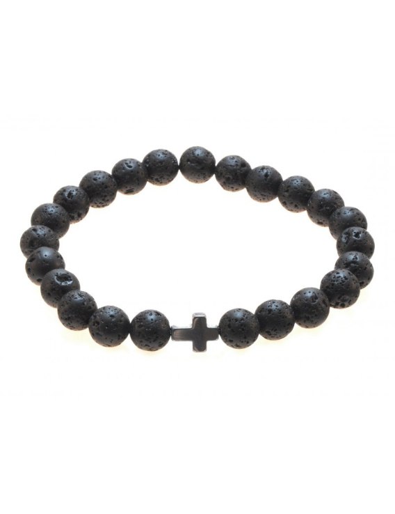 Bransoletka męska z kamieniem lawy i drobnym, ozdobnym krzyżykiem
