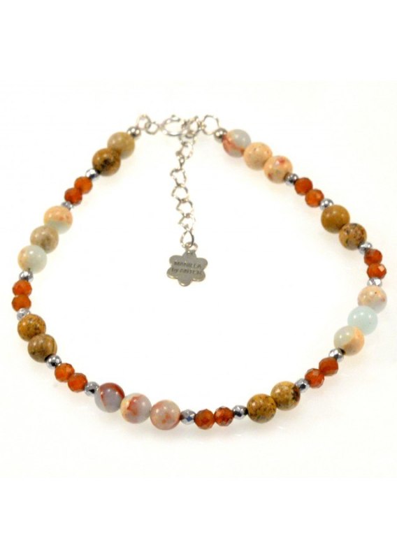 Bransoletka wykonana ze srebra próby 925 , platynowane Kamień: Jaspis i Granat Rozmiar kamienia: 3mm / 4mm Długość: 17,5 cm + przedłużka do 19,5 cm