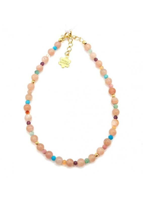 Bransoletka wykonana ze srebra próby 925, pozłacanego 24 karatowym złotem Kamień: Kamień słoneczny+ mix kamieni Rozmiar kamienia: 4/2mm Długość: 17,5 cm  Zapięcie: federing Bransoletka może być wykonana na gumce- prosimy o informację w uwagach do zamówienia Biżuteria ręcznie wykonana, produkt Polski.