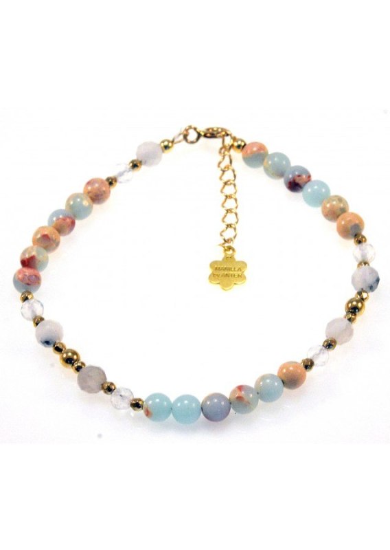 Bransoletka wykonana ze srebra próby 925 , pozłacanego 24 karatowym złotem Kamień: Kryształ górski, Jaspis Cesarski i Hematyt Rozmiar kamienia: 2mm / 3mm Długość: 17,5 cm + przedłużka do 19,5 cm