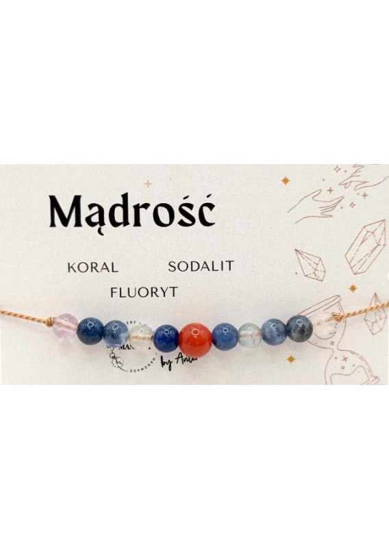 Bransoletka wykonana na sznurku. Kamień: Koral + Fluoryt + Sodalit Rozmiar kamienia: 4/6mm Długość: regulowana Zapięcie: Makrama Biżuteria ręcznie wykonana, produkt Polski.