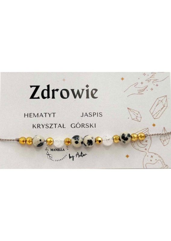 Bransoletka wykonana na sznurku. Kamień: Hematyt + Japis + Kryształ górski Rozmiar kamienia: 4/3mm Długość: regulowana Zapięcie: Makrama Biżuteria ręcznie wykonana, produkt Polski.
