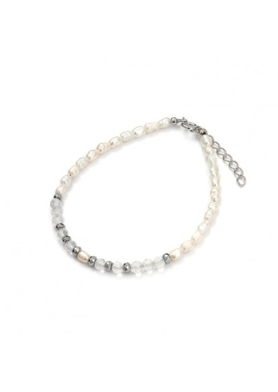 Bransoletka wykonana ze srebra próby 925 , rodowana Kamień: Hematyt + Kryształ górski +perła Rozmiar kamienia: 4 mm/2mm Długość :szyja: 17,5 cm + przedłużka do 19,5 cm