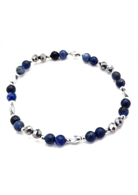 Bransoletka wykonana ze srebra próby 925. Kamień: Terahers / Sodalit Hematyt Rozmiar kamienia: 4/2mm Długość: 17,5 cm  Zapięcie: gumka Bransoletka może być wykonana na zapięciu- prosimy o informację w uwagach do zamówienia Biżuteria ręcznie wykonana, produkt Polski.