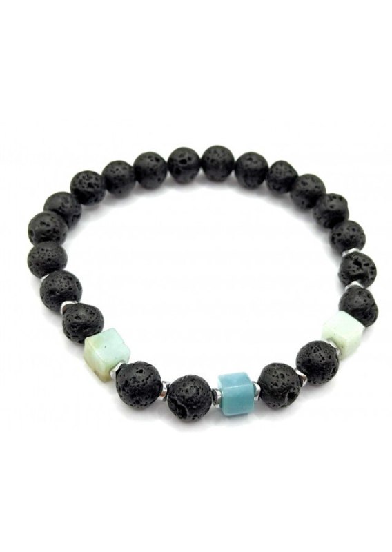 Bransoletka wykonana na gumce Kamień: Hematyt+ Lawa + Amazonit Rozmiar kamienia: ok 6 mm Rozmiar uniwersalny. Produkt wykonywany ręcznie.