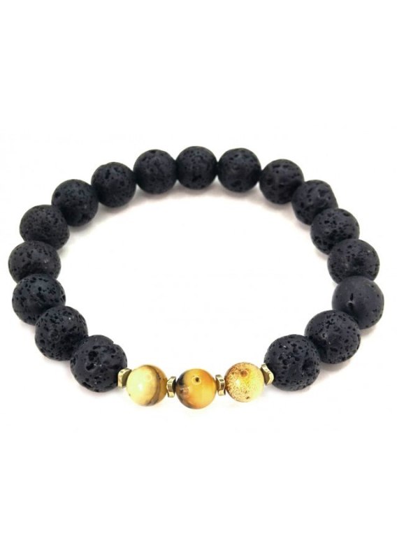 Bransoletka wykonana na gumce Kamień: Hematyt+ Bursztyn+ Lawa Rozmiar kamienia: ok 8-6 mm Rozmiar uniwersalny. Produkt wykonywany ręcznie.