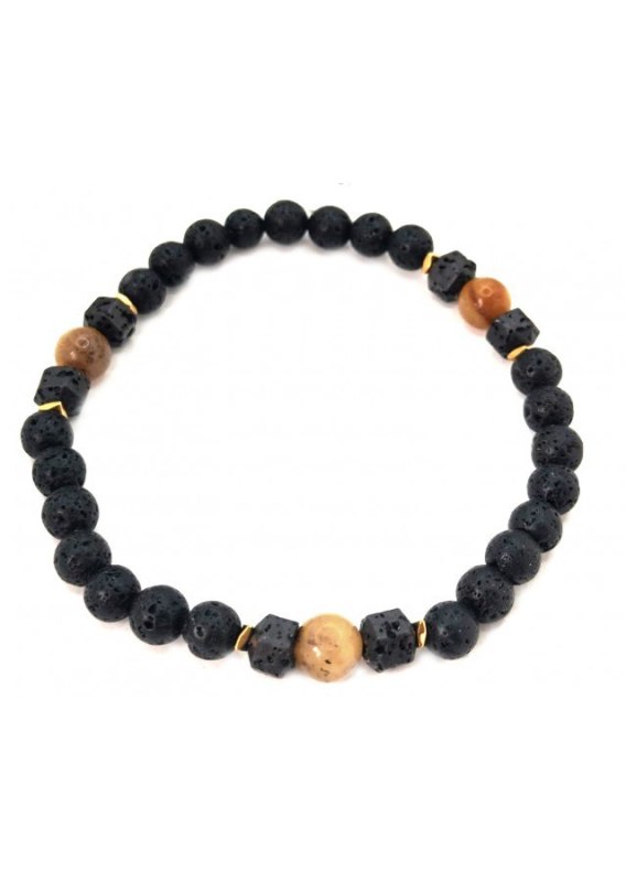 Bransoletka wykonana na gumce Kamień: Hematyt+ Bursztyn+ Lawa  Rozmiar kamienia: ok 6 mm Rozmiar uniwersalny. Produkt wykonywany ręcznie.
