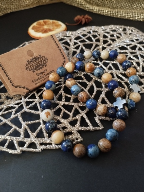 Sodalit to kamień harmonii ducha i umysłu. Pomaga w podtrzymywaniu głębokich emocji oraz oczyszcza myśli. Jest idealny dla osób poszukujących równowagi psychicznej i spokoju wewnętrznego. Natomiast jaspis obrazkowy jest uważany za kamień przynoszący spokój, poczucie bezpieczeństwa oraz zdolności do samodzielnego myślenia. Bransoletka została wykonana z wysokiej jakości materiałów. To nie tylko modny dodatek, ale również piękne wyrażenie wsparcia dla ukochanej osoby. Może być noszony przez przyjaciółki jako symbol więzi łączących Was od lat albo wręczony mamie czy siostrze jako dowód Twojej miłości i wdzięczności za ich wsparcie.