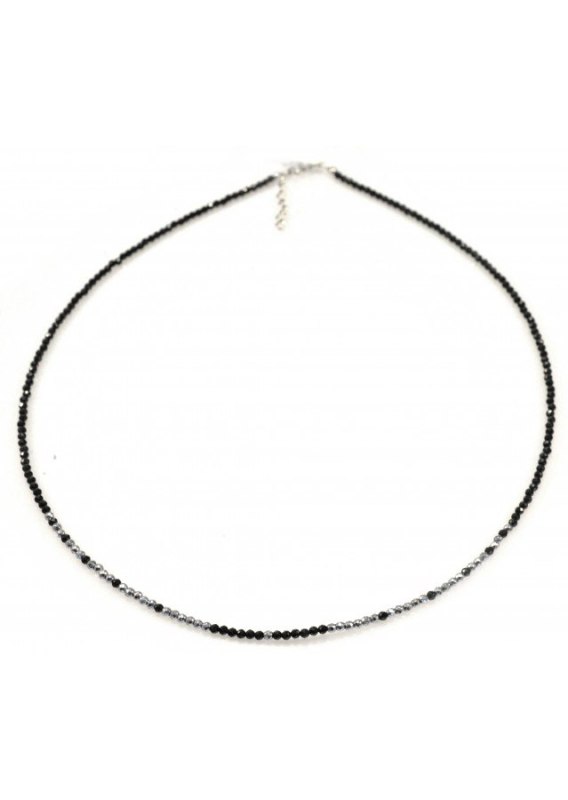 Naszyjnik wykonana ze srebra próby 925, pozłacanego 24 karatowym złotem. Kamień: Turmalin+ Hematyt Rozmiar kamienia: 2 mm Długość: 44 cm  Długości do wyboru: 38 cm /42 cm/ 44 cm Zapięcie: klasyczne (federing) Biżuteria ręcznie wykonana, produkt Polski.
