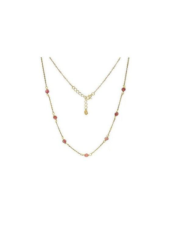 Naszyjnik wykonany ze srebra próby 925 , pozłacanego 24 karatowym, żółtym złotem Kamień:  Różowy turmalin Rozmiar kamienia: 3 MM Długość :42 cm + przedłużka do 45 cm Długości do wyboru: 38 cm /42 cm/ 45 cm ( są to najkrótsze wymiary naszyjnika-każdy model ma dodatkową przedłużkę)  WIĘCEJ INFORMACJI   Możliwość zmiany kamienia WIĘCEJ INFORMACJI