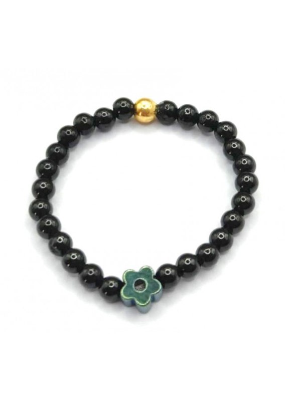 Kamień: Spinel + Hematyt+ srebrny element, pozłacane 24 karatowym żółtym złotem Pierścionek wykonany na bardzo wytrzymałej gumce, odpornej na uszkodzenia. Rozmiar kamienia: 3/2 mm Rozmiar uniwersalny.