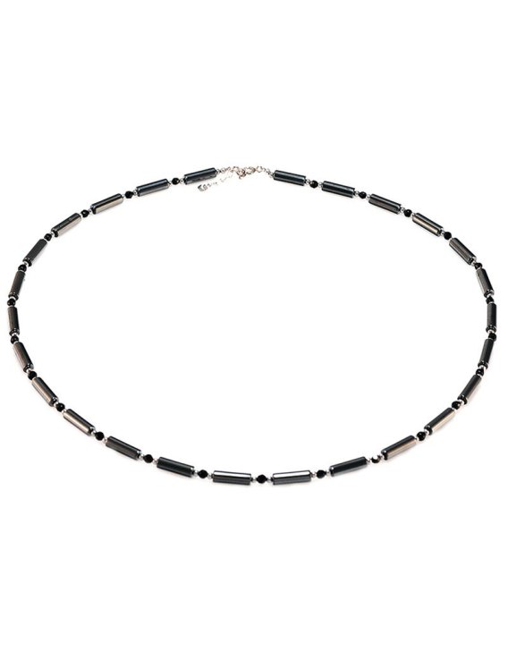 Naszyjnik męski z hematytu i turmalinu. Solidny dodatek z naturalnych kamieni, który dobrze łączy się z innymi bransoletkami i naszyjnikami.
