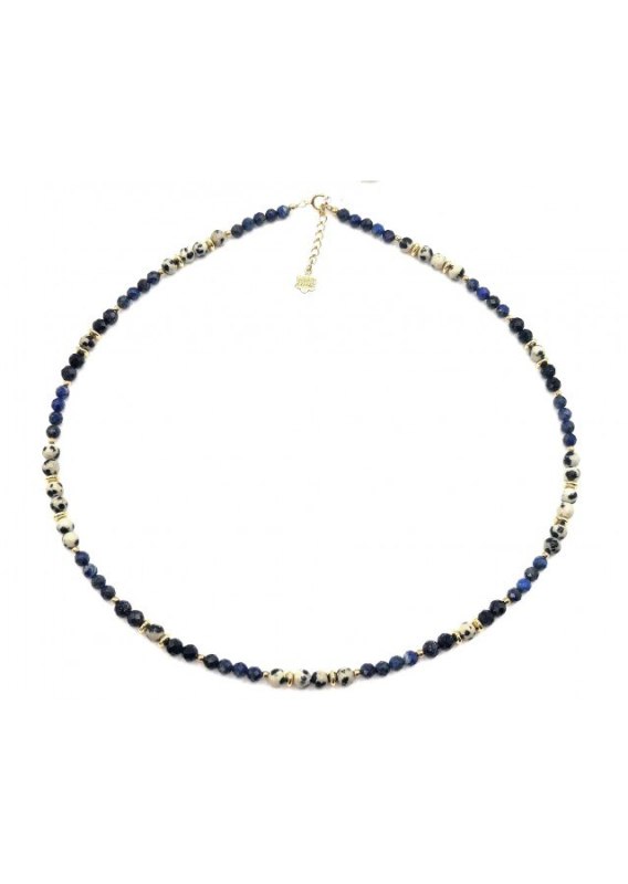 Naszyjnik wykonany ze srebra próby 925, pozłacanego 24 karatowym złotem. Kamień: Jaspis+ Lapis+ Hematyt Rozmiar kamienia: 4/3/2 mm Długość: 44 cm  Długości do wyboru: 38 cm /42 cm/ 44 cm Zapięcie: klasyczne (federing) Biżuteria ręcznie wykonana, produkt Polski.