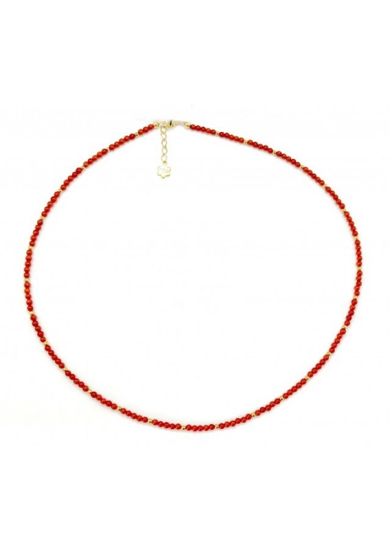 Naszyjnik wykonany ze srebra próby 925, pozłacanego 24 karatowym złotem. Kamień: Koral + Hematyt Rozmiar kamienia: 2 mm Długość: 44 cm  Długości do wyboru: 38 cm /42 cm/ 44 cm Zapięcie: klasyczne (federing) Biżuteria ręcznie wykonana, produkt Polski.
