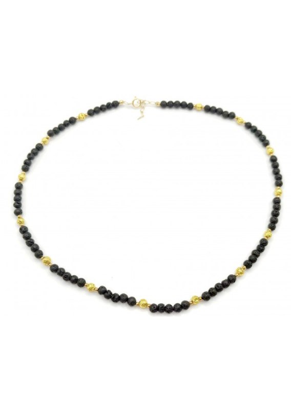 Naszyjnik wykonana ze srebra próby 925, pozłacanego 24 karatowym złotem. Kamień: Lawa+ Hematyt Rozmiar kamienia: 4/2 mm Długość: 44 cm  Długości do wyboru: 38 cm /42 cm/ 44 cm Zapięcie: klasyczne (federing) Biżuteria ręcznie wykonana, produkt Polski.