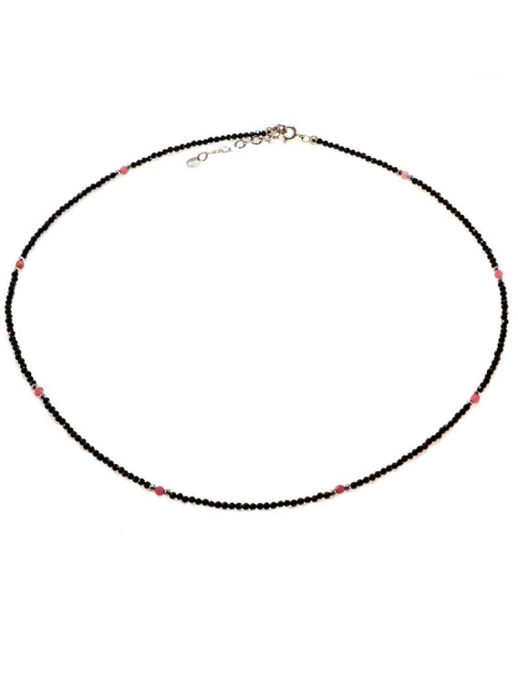 Naszyjnik  wykonany ze srebra próby 925 , rodowanego Kamień:  Spinel  + Hematyt (BAZA)+ Różowy turmalin (BAZA) Rozmiar kamienia: ok.2,5 mm Długość: 45 cm + przedłużka do 48 cm Długości do wyboru: 38 cm /42 cm/ 45 cm ( są to najkrótsze wymiary naszyjnika-każdy model ma dodatkową przedłużkę)  WIĘCEJ INFORMACJI   Możliwość modyfikacji kamienia WIĘCEJ INFORMACJI   Produkt wykonywany ręcznie.