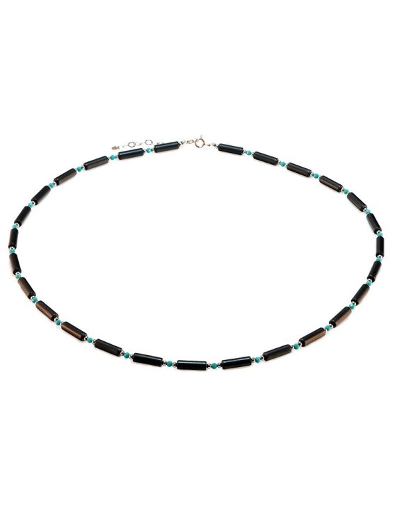 Naszyjnik męski z turkusu i hematytu. Harmonijne połączenie naturalnych kamieni tworzy wyrazisty, subtelny dodatek do codziennego stylu.