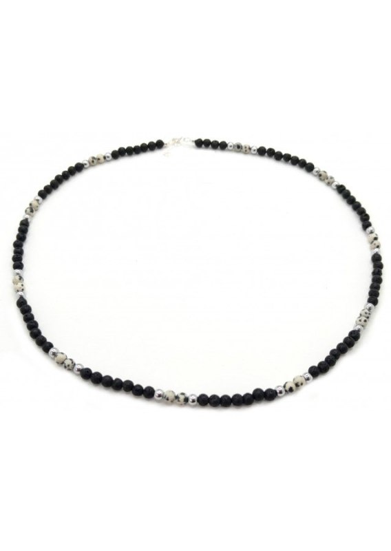 Naszyjnik wykonana ze srebra próby 925, Kamień: Lawa+ Hematyt+ Jaspis Rozmiar kamienia: ok 4 mm Długość: 50 cm  Zapięcie: klasyczne (federing) Biżuteria ręcznie wykonana, produkt Polski.