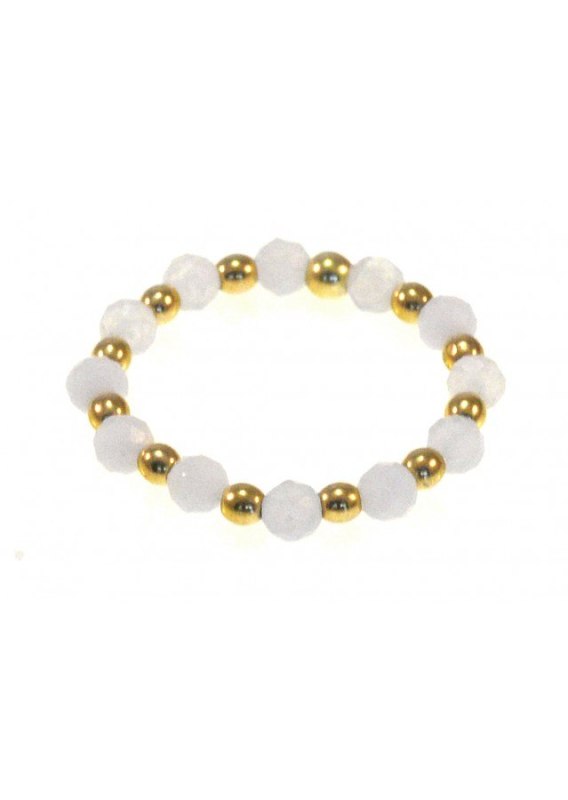 Kamień: Kamień księżycowy+ Hematyt+ srebrny element, pozłacane 24 karatowym żółtym złotem Pierścionek wykonany na bardzo wytrzymałej gumce, odpornej na uszkodzenia.  Rozmiar kamienia: 2/3 mm Rozmiar uniwersalny. Produkt wykonywany ręcznie