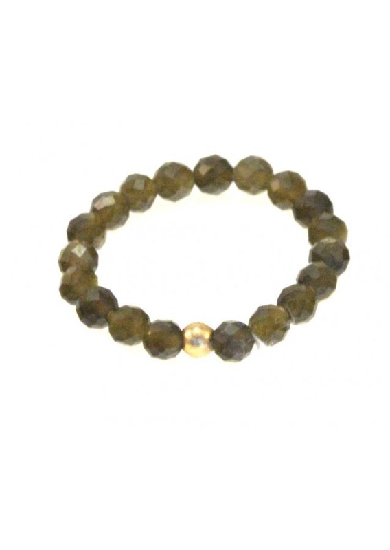 Kamień: Obsydian+ srebrny element, pozłacane 24 karatowym żółtym złotem Pierścionek wykonany na bardzo wytrzymałej gumce, odpornej na uszkodzenia.  Rozmiar kamienia: 3 mm Rozmiar uniwersalny. Produkt wykonywany ręcznie