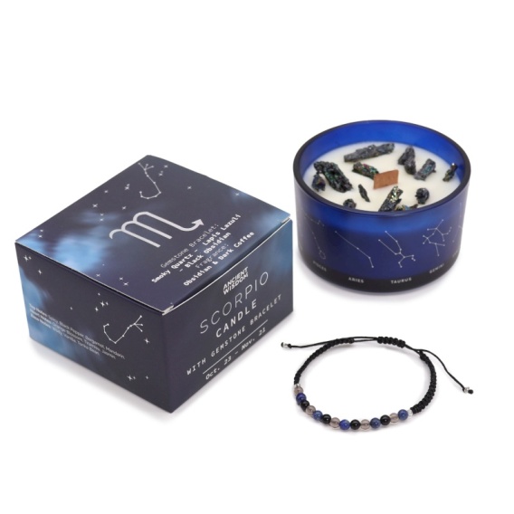Skorpion - świeczka zapachowa i bransoletka z drobnych kamieni naturalnych