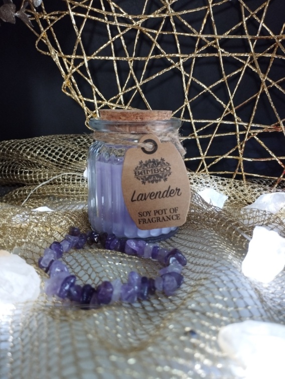 Zestaw na Walentynki - Świeca sojowa Lawendowa i bransoletka z Ametystem